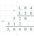 3. Выполним умножение результата на число за скобками: $-1,04 \cdot (-3,5)$. Произведение двух отрицательных чисел положительно: $1,04 \cdot 3,5 = 3,64$.
