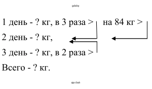 4.58. В первый день магазин продал в 3 раза больше апельсинов, чем во второй, а в третий – в 2 раза больше, чем во второй. Сколько килограммов апельсинов продал магазин за три дня, если в первый день было продано на 84 кг больше, чем во второй?