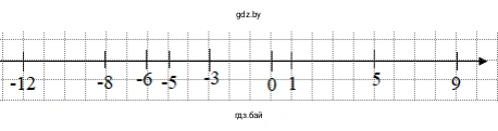 4.91. Отметьте на координатной прямой числа -8, 1, -5, -6, 9, 0, -3, -12, 5, 6 и сравните: