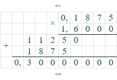 $1,6 \cdot 0,1875 = \frac{8}{5} \cdot \frac{3}{16} = \frac{8 \cdot 3}{5 \cdot 16} = \frac{1 \cdot 3}{5 \cdot 2} = \frac{3}{10} = 0,3$.