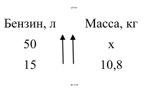 а) Чему равна масса 50 л бензина, если масса 15 л бензина равна 10,8 кг?