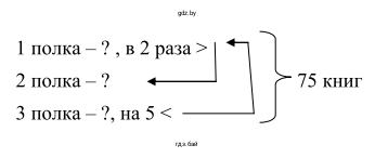 5.91. На трёх полках 75 книг. На первой полке книг в 2 раза больше, чем на второй, а на третьей на 5 книг меньше, чем на первой. Сколько книг на каждой полке?