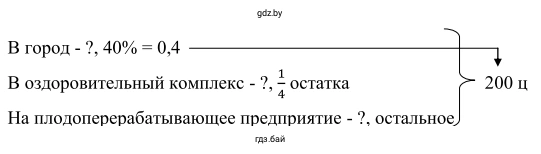 Всего было собрано 200 центнеров (ц) винограда. В город отправили 40% от этого количества. Чтобы найти 40% от 200, нужно умножить 200 на десятичное представление процента ($40\% = 0,4$).