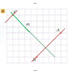 1. Найдём угловой коэффициент прямой $m$. На рисунке (в) прямая $m$ при смещении на 1 клетку вправо опускается на 1 клетку вниз. Её угловой коэффициент равен $k_m = \frac{-1}{1} = -1$.