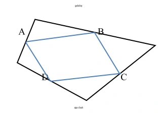 Нарисуйте четырёхугольник. Отметьте точки A, B, C и D середины сторон. Проведите отрезки AB, BC, CD и AD.