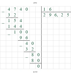 $y = \frac{47,4 \cdot 100}{0,16 \cdot 100} = \frac{4740}{16}$