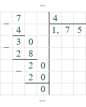 $-0,7 : (-0,4) = 0,7 : 0,4 = 7 : 4 = 1,75$