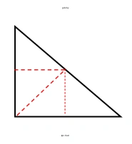Чтобы разделить прямоугольный треугольник на четыре равных треугольника, необходимо найти середины каждой из трех его сторон (двух катетов и гипотенузы) и соединить эти точки отрезками. В результате образуются четыре конгруэнтных треугольника, так как по свойству средней линии стороны каждого малого треугольника будут равны половинам сторон исходного большого треугольника.