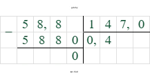$5,88 : (-14,7) = - \frac{5,88}{14,7} = - \frac{58,8}{147} = -0,4$.